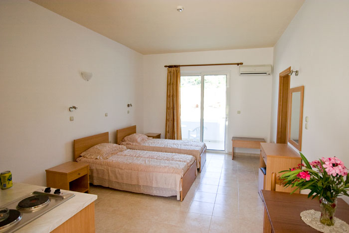 | Nicely furnished and spacious rooms, with all the comforts including private toilet/shower, a balcony with tables and chairs so you can relax in the evening over a cool and refreshing drink.!! All the studios are fully Air Conditioned with independent remote control so you can turn it off and on at the touch of a button.!! |