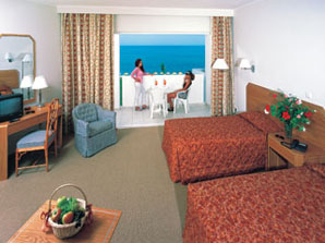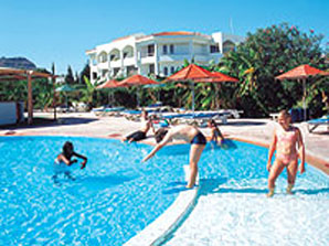 selection of Greek and French wines and champagnes. Complete your evening entertainment listening and dancing to the sounds of our live band playing all-time Greek and International favorites. Other facilities include: Restaurant, Bar, Pool and snack Bar, Beach Bar, tennis court and a mini-golf within only 200 meters from out resort and if the name of your game is golf, Afandou Golf is only 5 km away. All of the 191 rooms are tastefully furnished and fully equipped with private bathroom, satellite T.V., air conditioning, mini refrigerator, radio, direct dial telephone, balcony or terrace. |